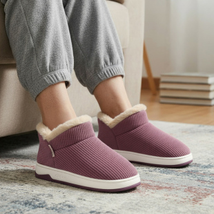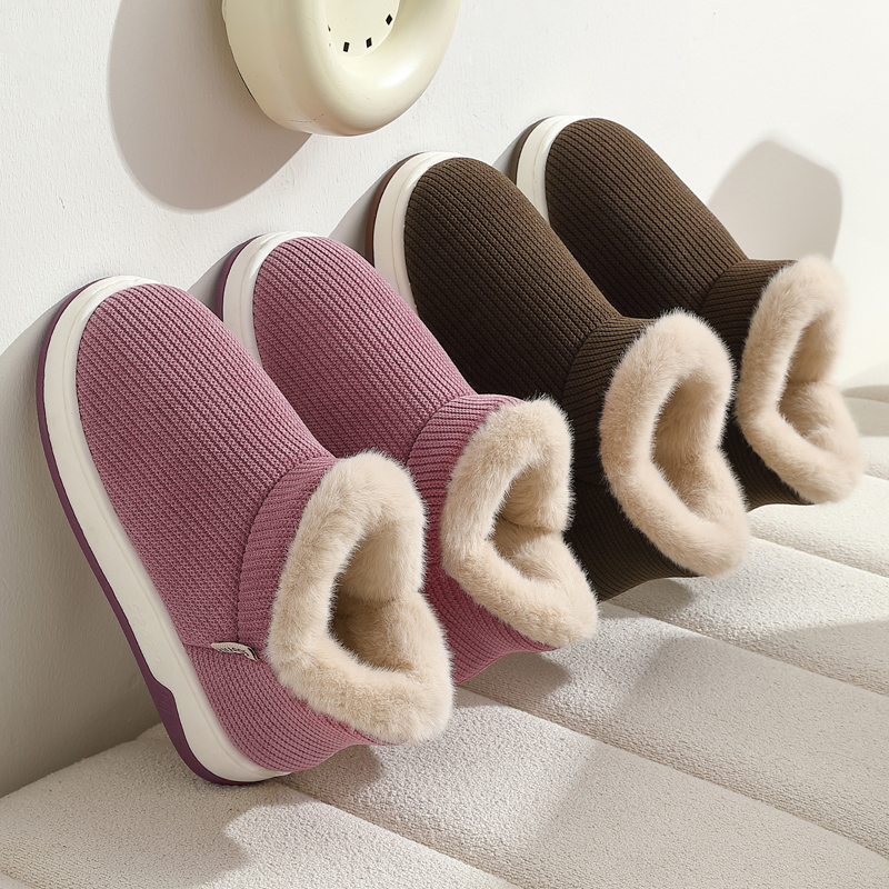 毛毛加绒厚底包跟棉鞋 老人防滑棉拖鞋 室内家居2025新款 冬季 女 女款