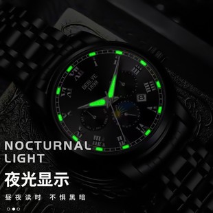 商务防水石英腕表 名牌全自动非机械表钢带男款 镂空男士 手表男正品