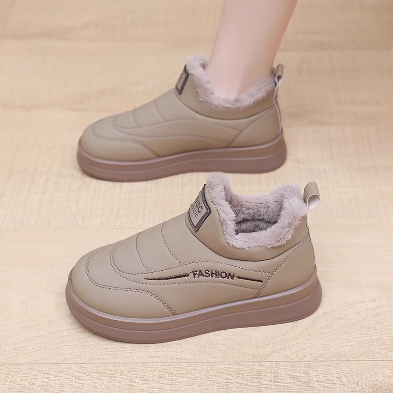 靴子女休闲女士舒适雪地靴保暖防滑棉靴 加绒一脚蹬妈妈鞋 冬季 新款