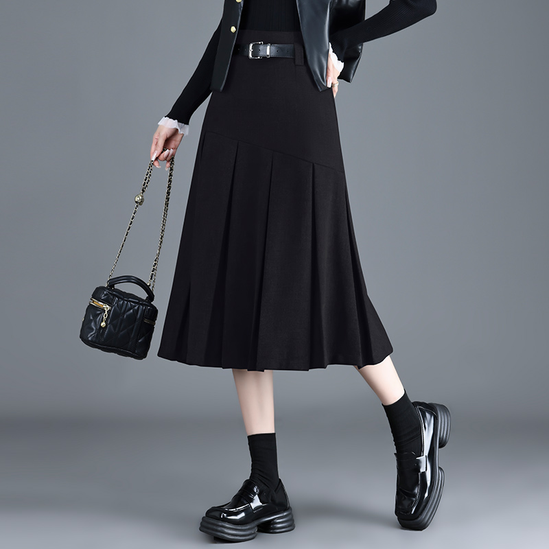 高腰梨型身材A字裙伞裙 半身裙百褶裙大码 胖mm显瘦百搭西装 中长款