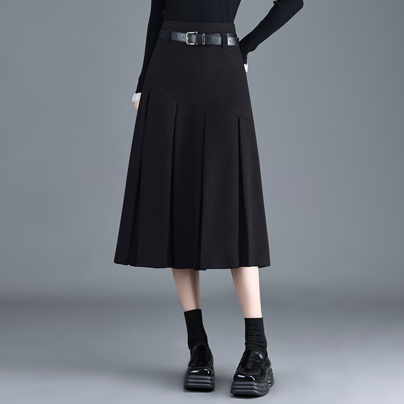 裙女秋冬半身裙高腰休闲大摆a字过膝中长裙 STYLE灰色百褶西装