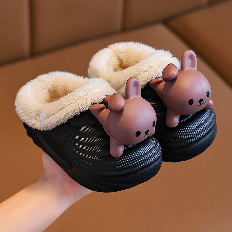 防滑居家男童防水保暖毛绒宝宝拖鞋 2025新款 女童秋冬季 儿童棉拖鞋