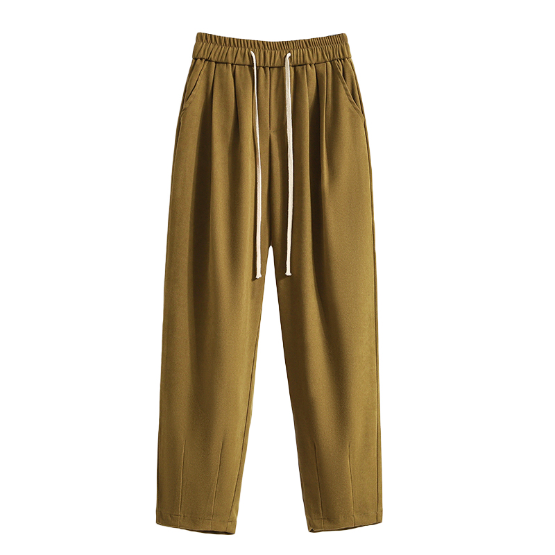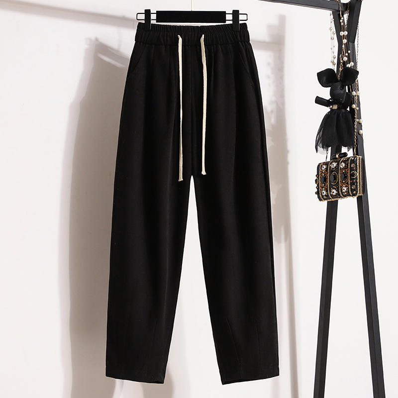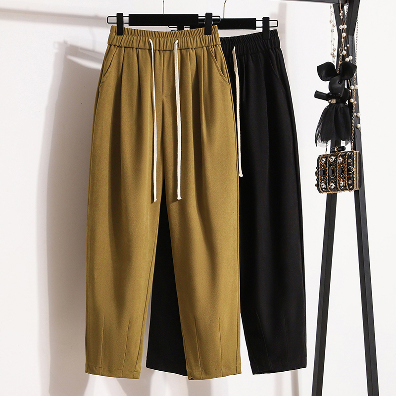韩版 宽松遮肉显瘦阔腿裤 简约捏褶抽绳休闲裤 新款 胖妹妹秋季 加大码