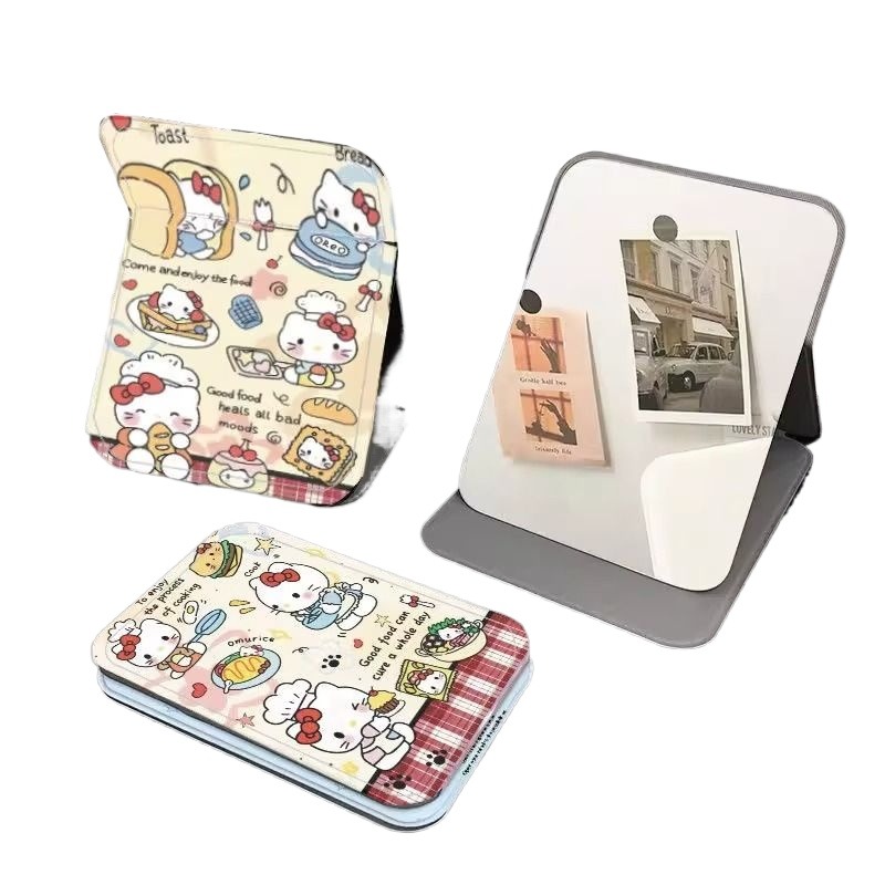 折叠镜家用桌面化妆镜子学生宿舍可爱猫咪花朵随身镜小巧便携台式