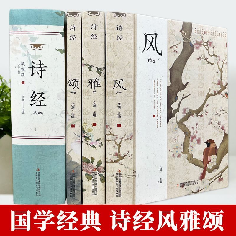 诗经风雅颂全套3册原著完整版 全彩全集中国古典文学唐诗宋词鉴赏