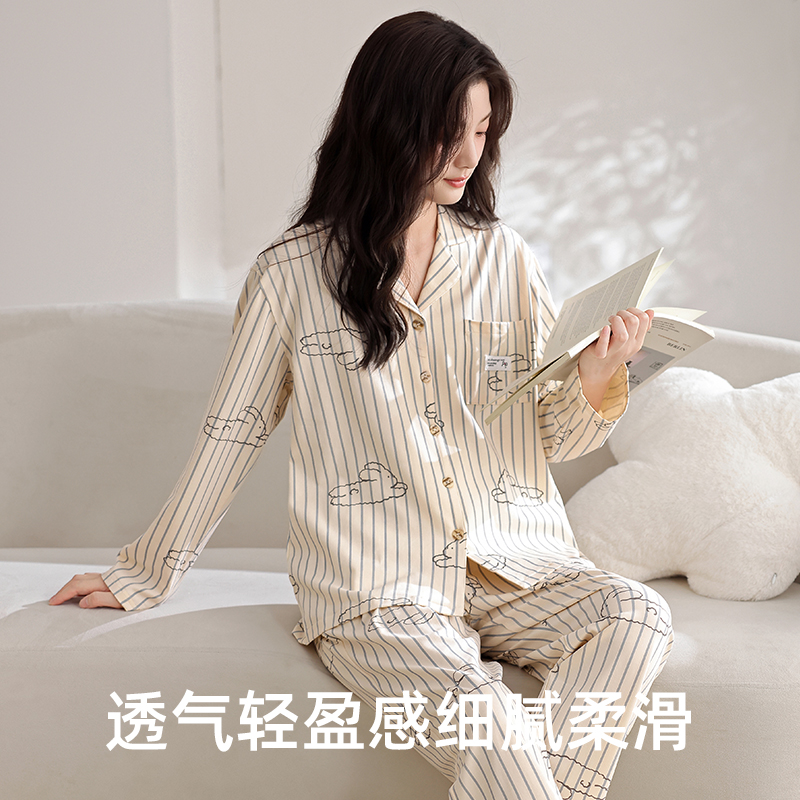 巨柔软 男女家居服套装 纯棉睡衣情侣春秋款 宽松大码 长袖 安之伴