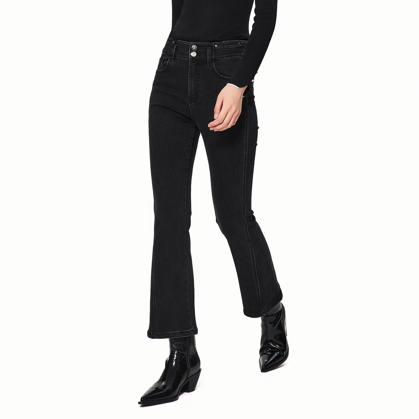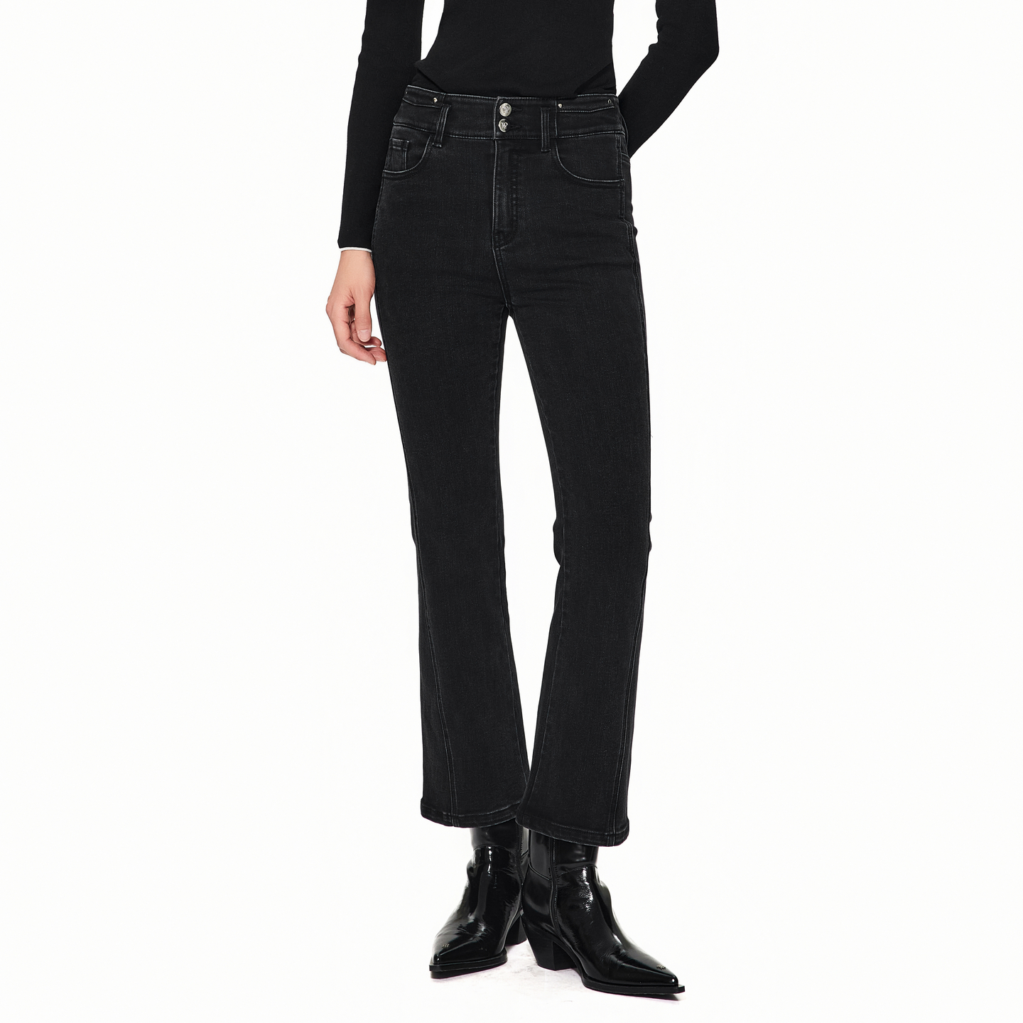 新款 ONLY2025秋季 加绒内里高腰弹力紧身小个子九分牛仔裤 塑型裤