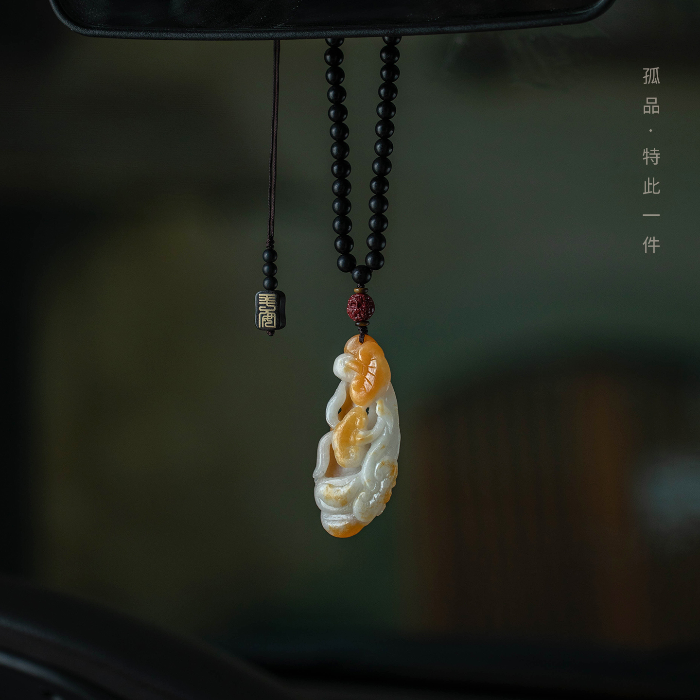 如意玉石汽车挂件天然和田玉后视镜挂饰品高级感一物一证 孤品