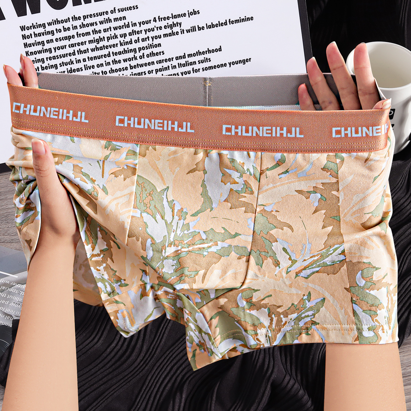 内裤 衩中腰印花纯棉男士 舒适透气男款 男式 个性 四角裤 潮流平角短裤