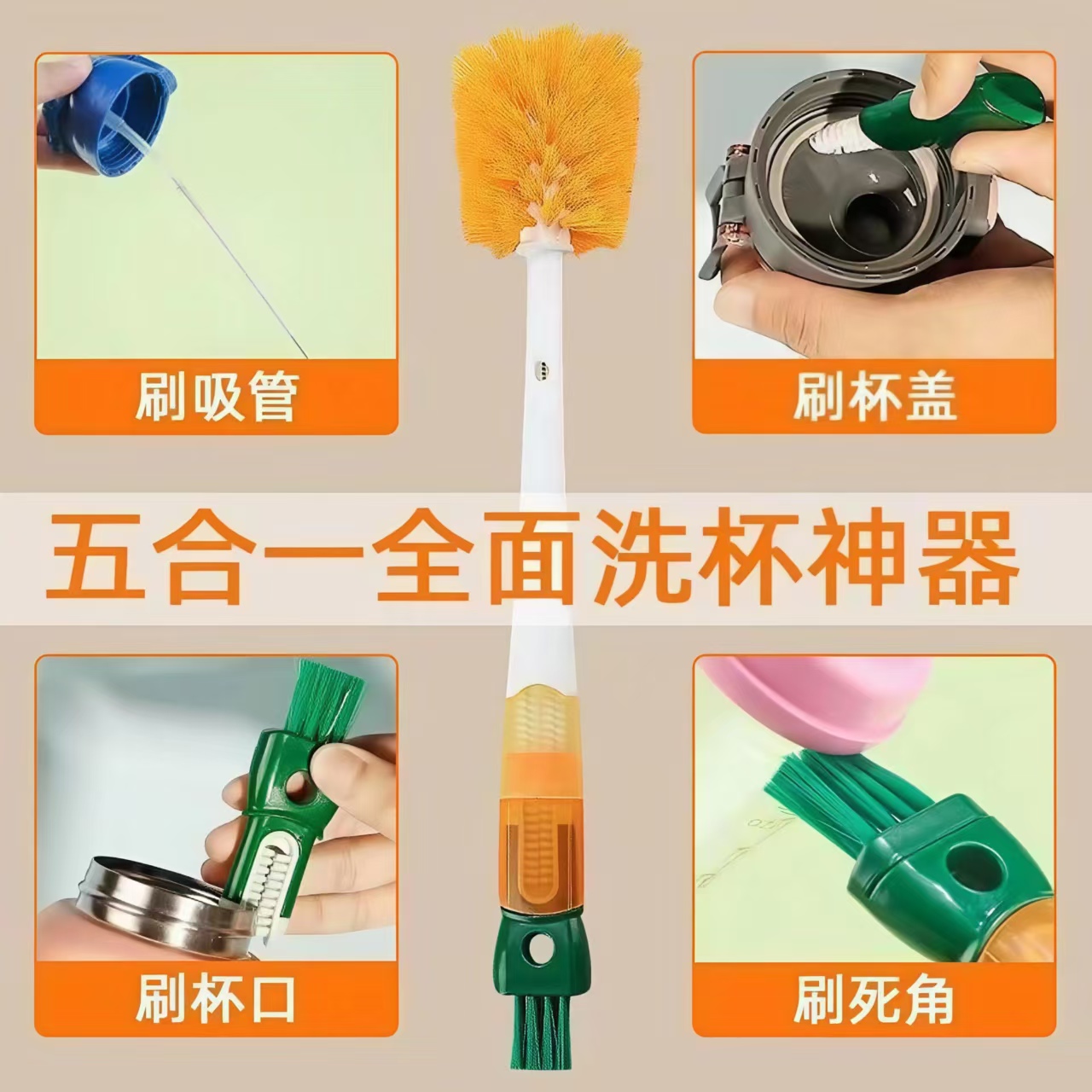 杯刷清洗神器保温杯盖清洁刷五合一长柄奶瓶刷子洗杯子吸管刷好物