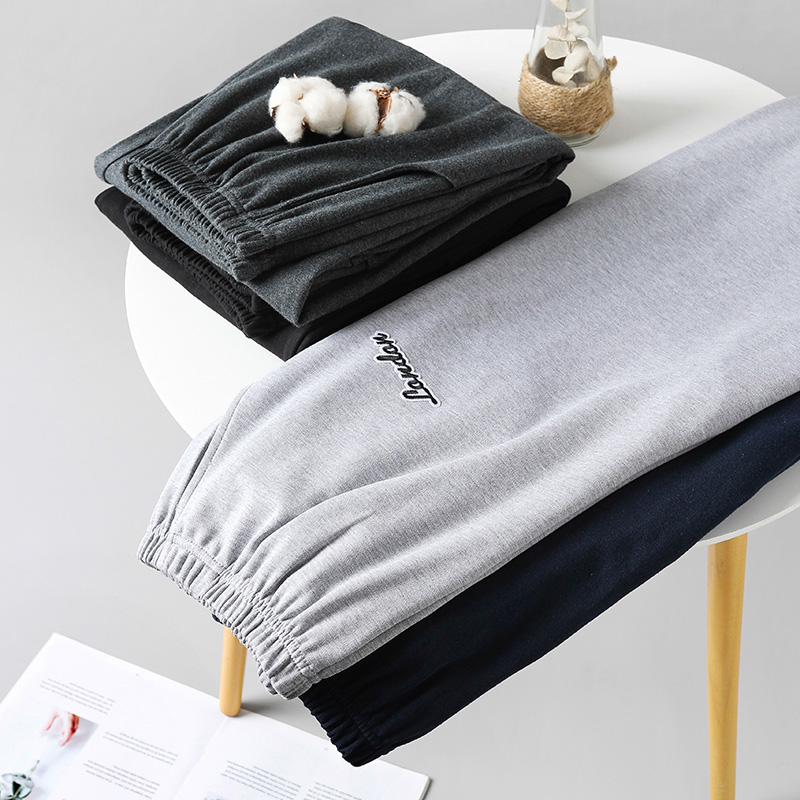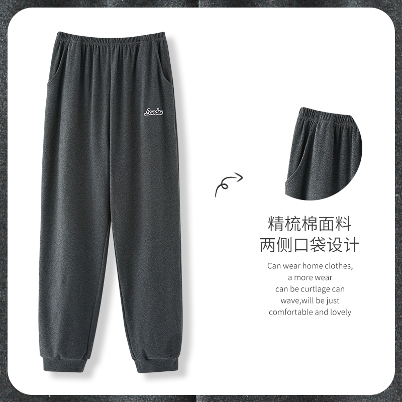 睡裤 中青年家居裤 男纯色棉质休闲束腿长裤 薄款 秋天宽松大码 春秋季