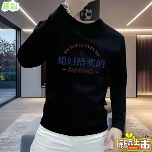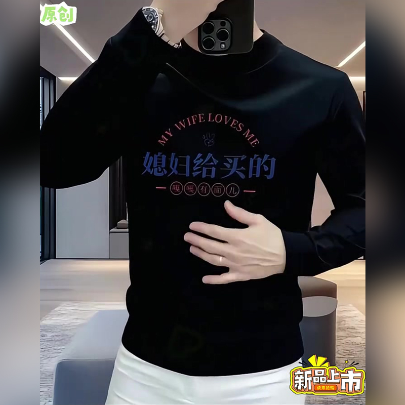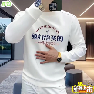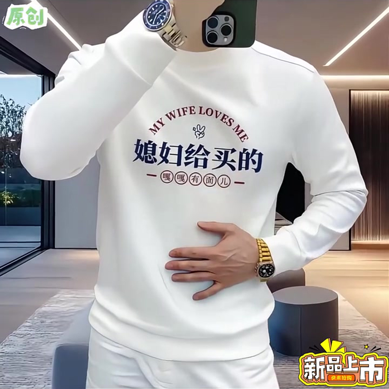 青年白色圆领打底衫 2025年冬季 创意文字印花卫衣男士 潮牌个性 新款