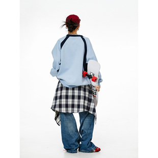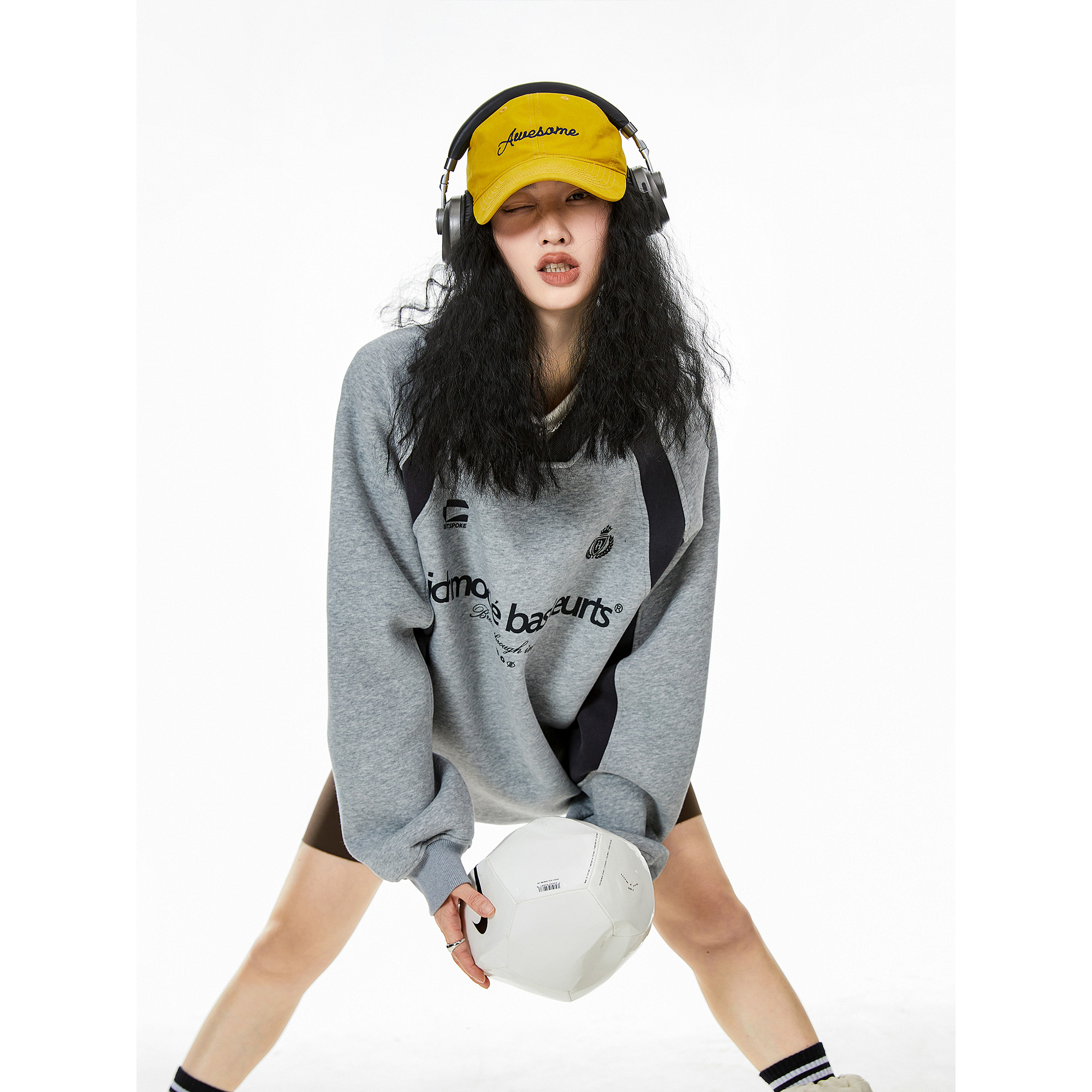卫衣美式 ICH 2025新款 V领灰色春季 复古休闲百搭上衣女 MODE插肩袖
