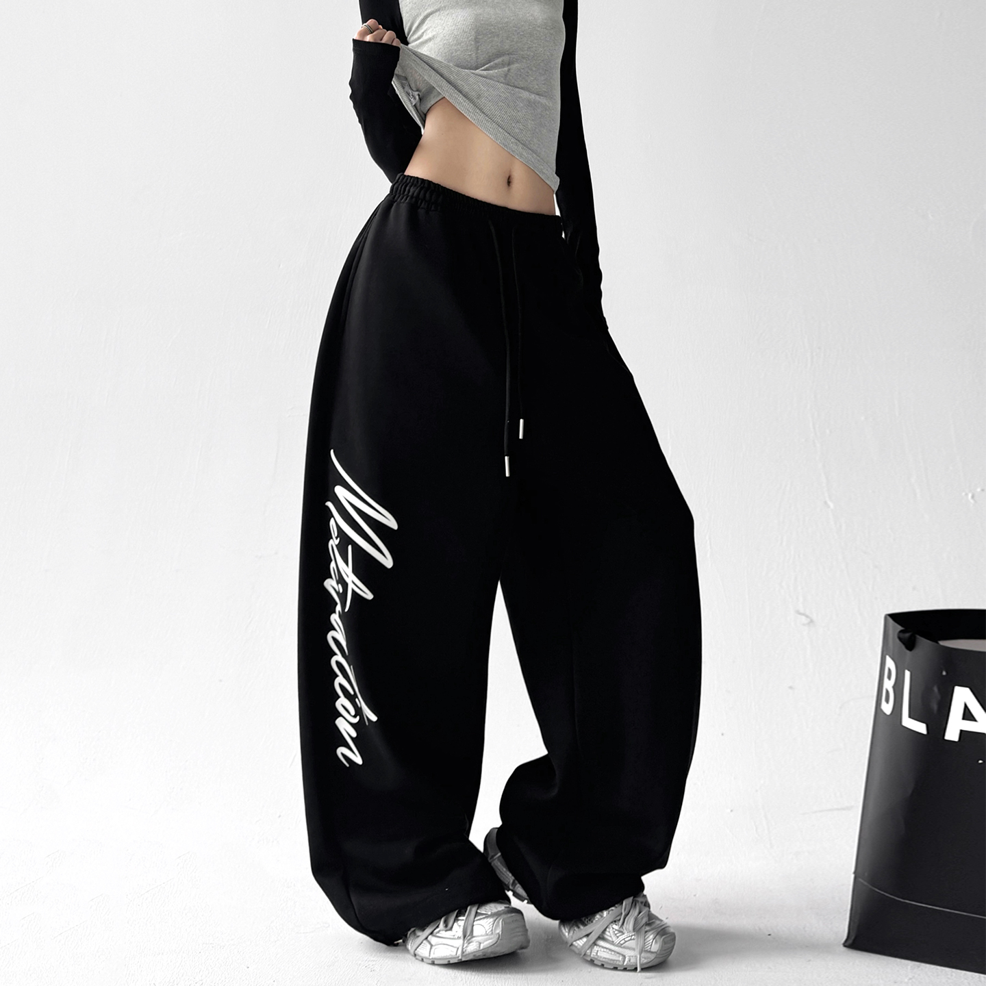宽松垂坠感慵懒休闲弯刀阔腿卫裤 子女春秋2025新款 运动香蕉裤 美式