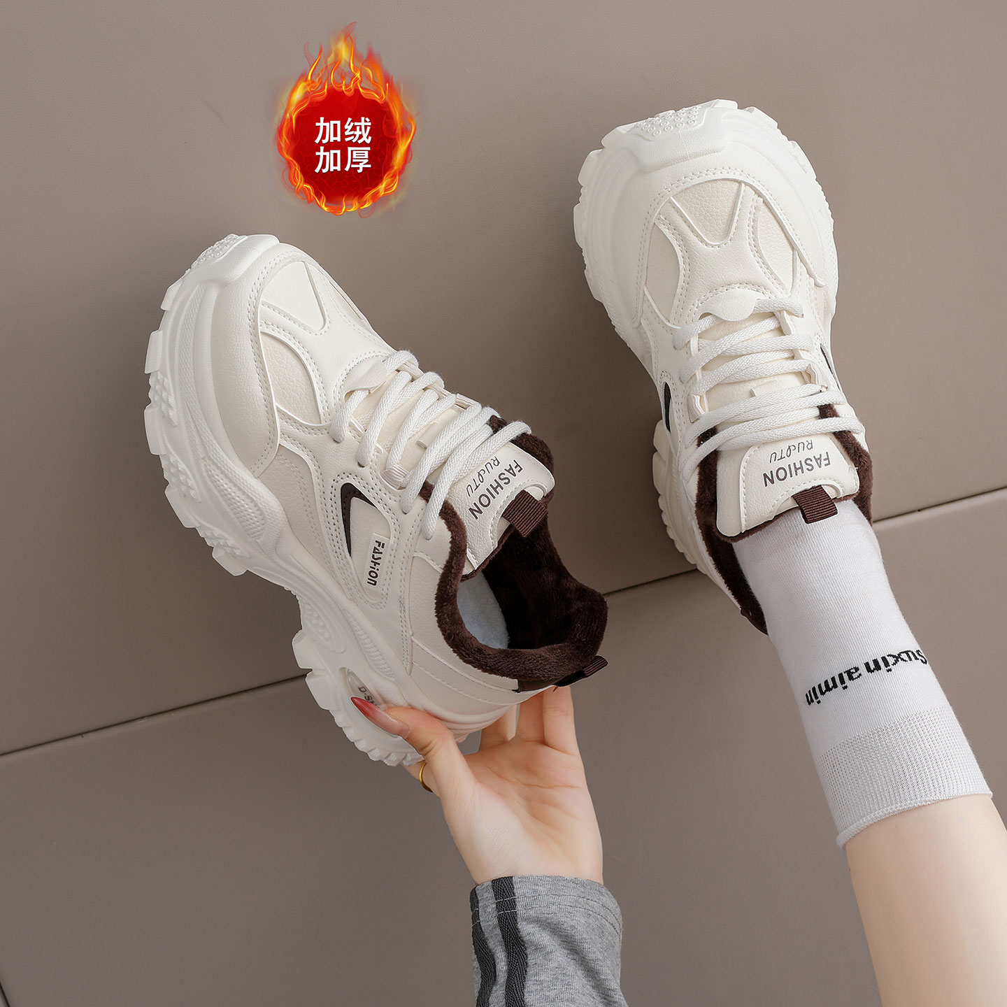 厚底增高休闲百搭运动鞋 黑色老爹鞋 加绒保暖二棉鞋 冬季 女2025新款