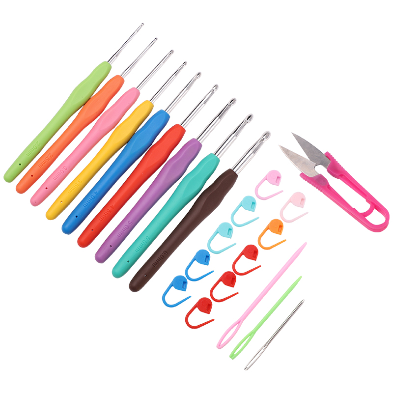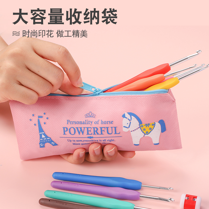 勾针钩针工具全套装 手工软柄毛线衣编织包包不锈钢钩针diy材料包