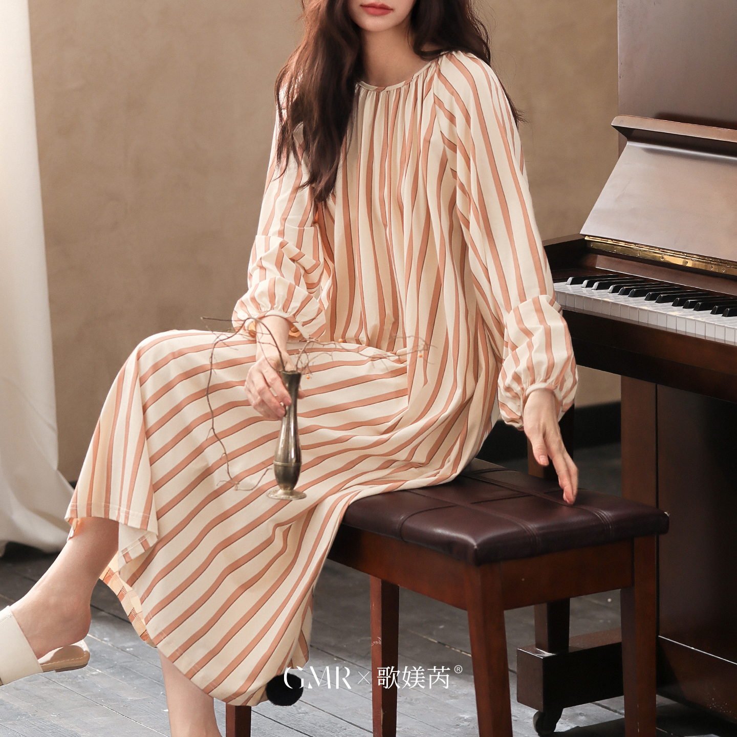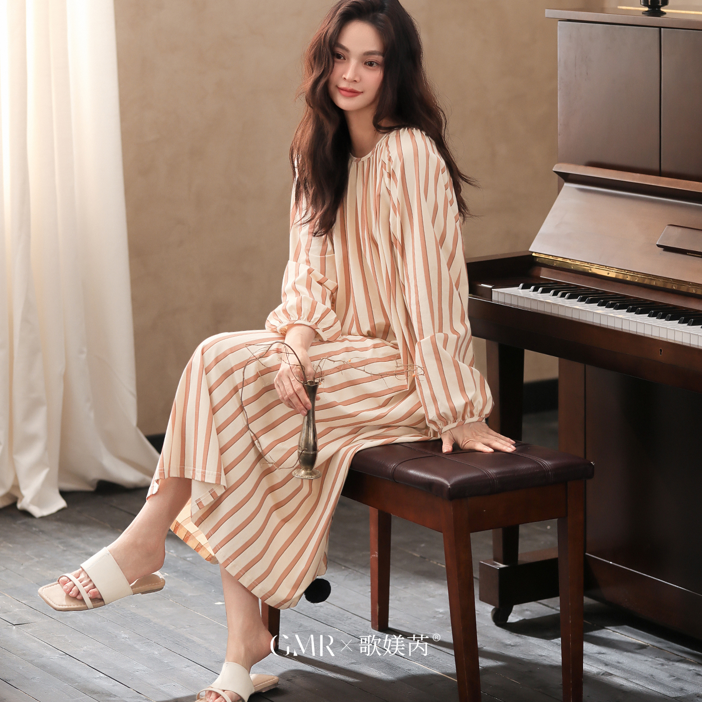 宽松大码 纯棉长袖 套头家居服中长裙可外穿 秋季 睡裙女士睡衣春秋款
