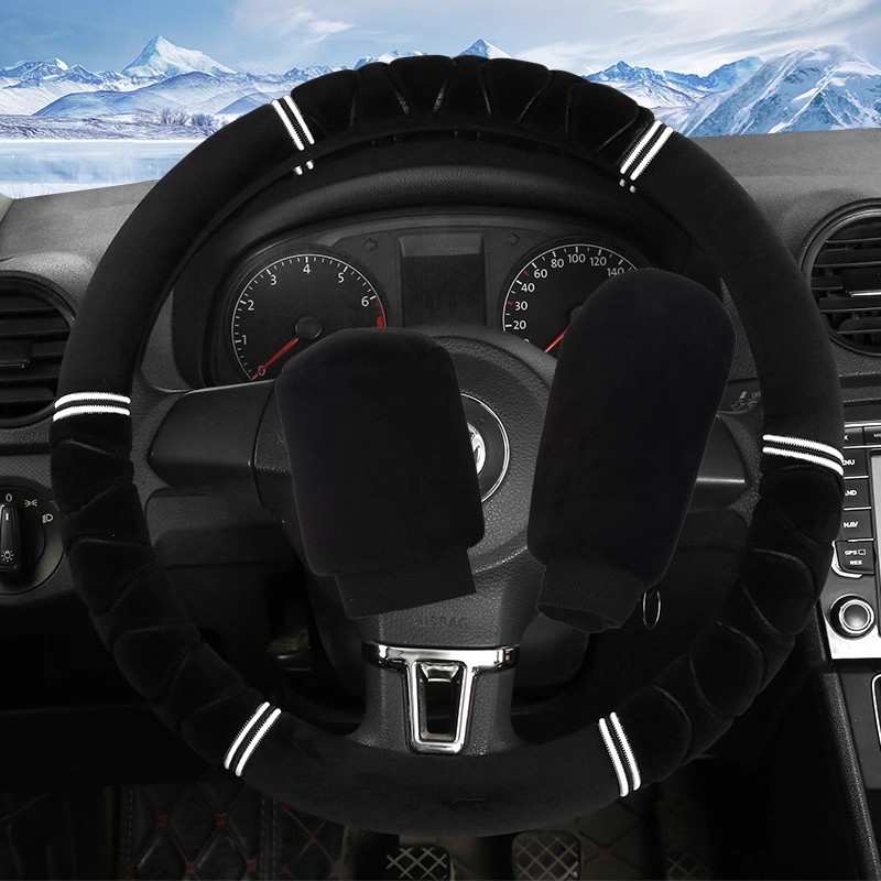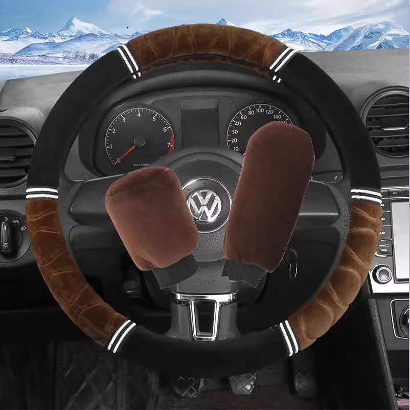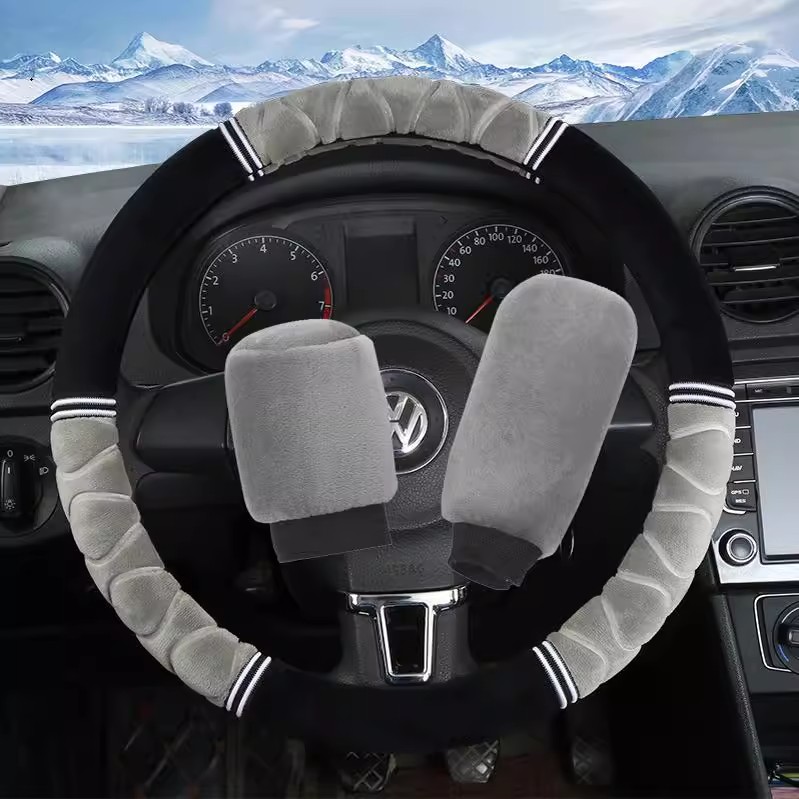 汽车方向盘套冬季 短毛绒把套通用型现代大众朗逸男女冬天保暖把套