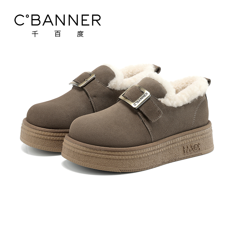 女冬季 保暖棉鞋 新款 一脚蹬豆豆鞋 靴子 厚底加绒毛毛鞋 千百度勃肯鞋