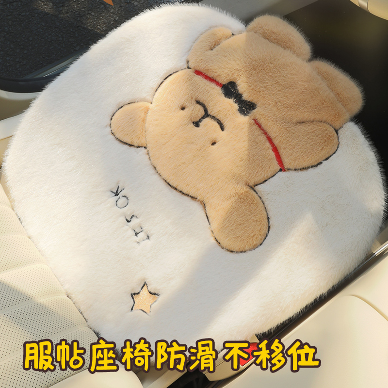 汽车坐垫冬季 可爱高级感女士毛绒线条狗座垫座套冬天保暖女生车垫