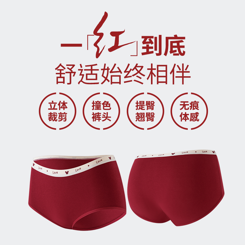 雅鹿纯棉本命年内裤 女7a级抗菌全棉裆新年结婚大红色少女生三角裤