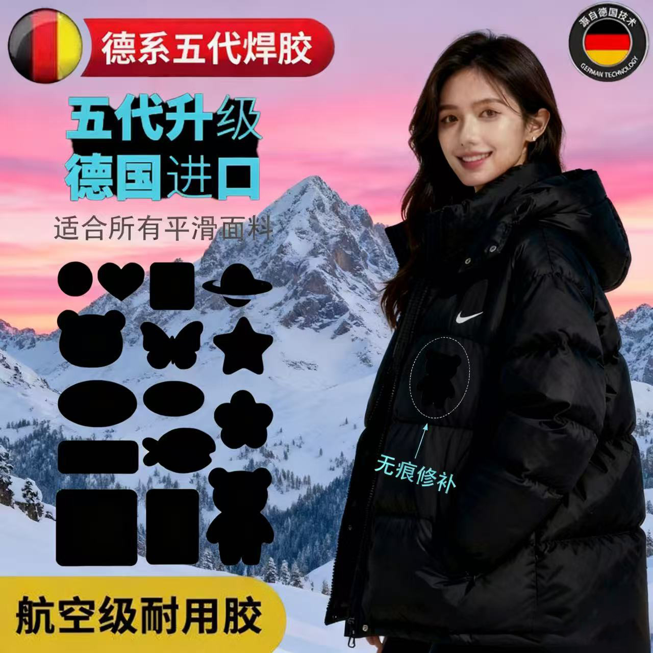 亮面羽绒服黑色补丁贴自粘免缝可水洗强粘无痕适配高梵黑金修复贴