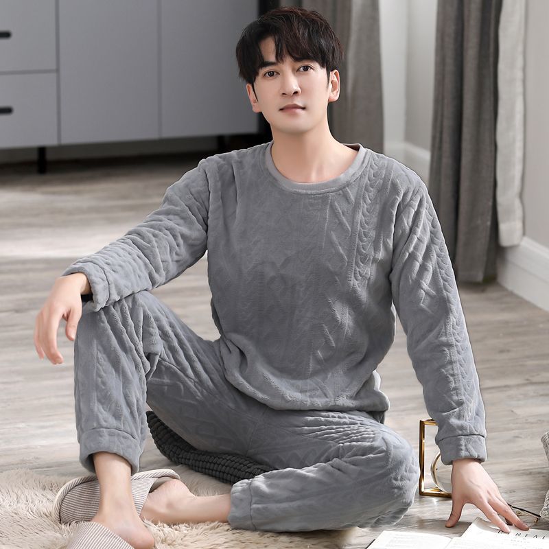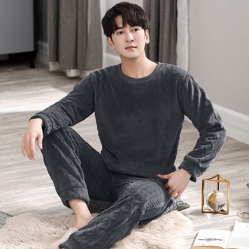 可外穿保暖舒适家居服套装 法兰绒加绒加厚男士 秋冬季 婷美睡衣男款