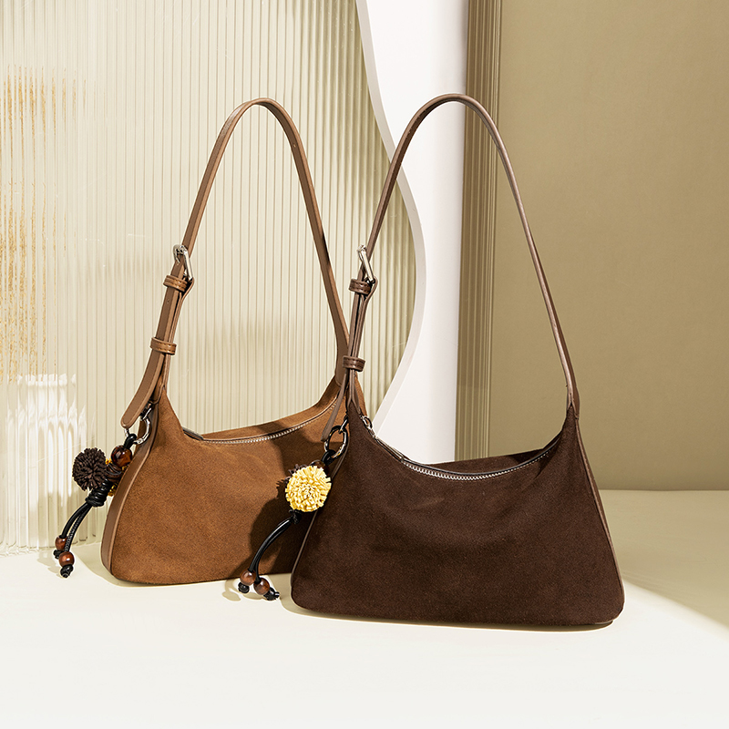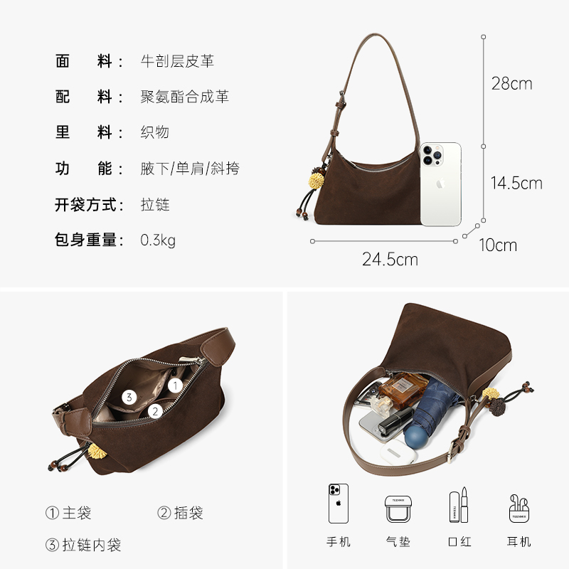 天美意真皮腋下包女2025新款 百搭休闲单肩包斜挎包复古牛皮通勤包