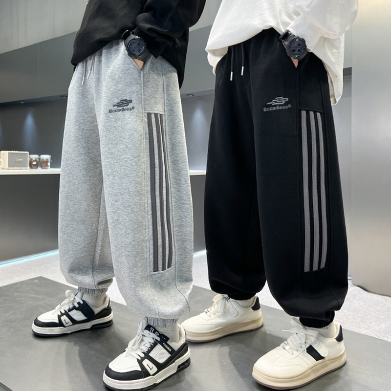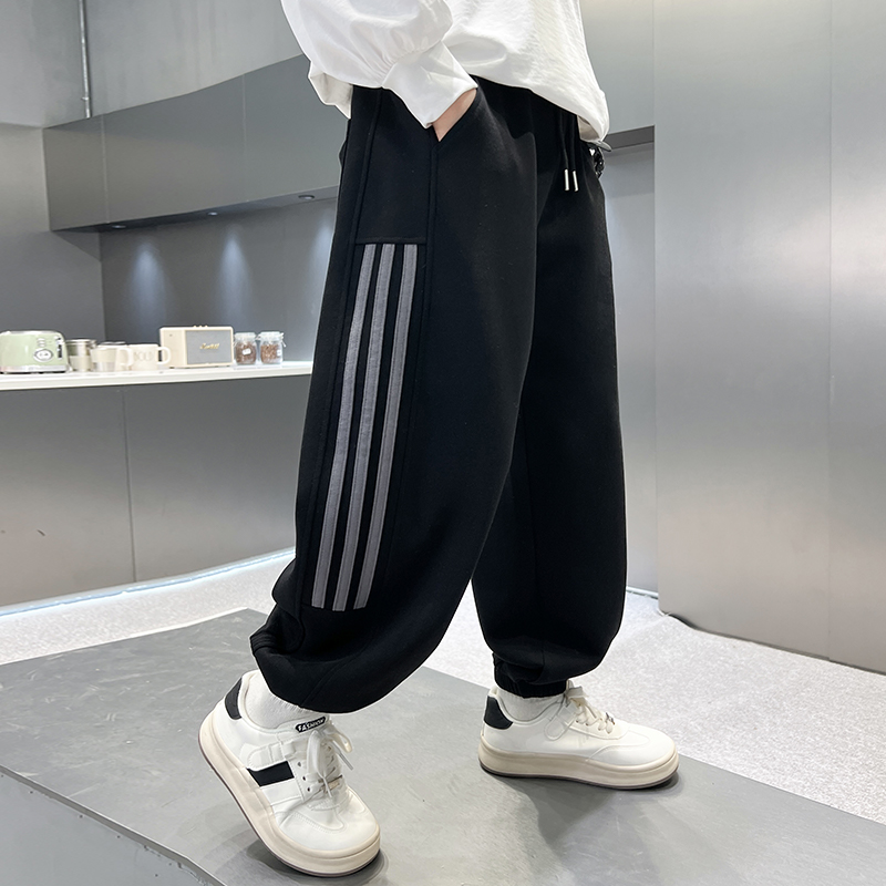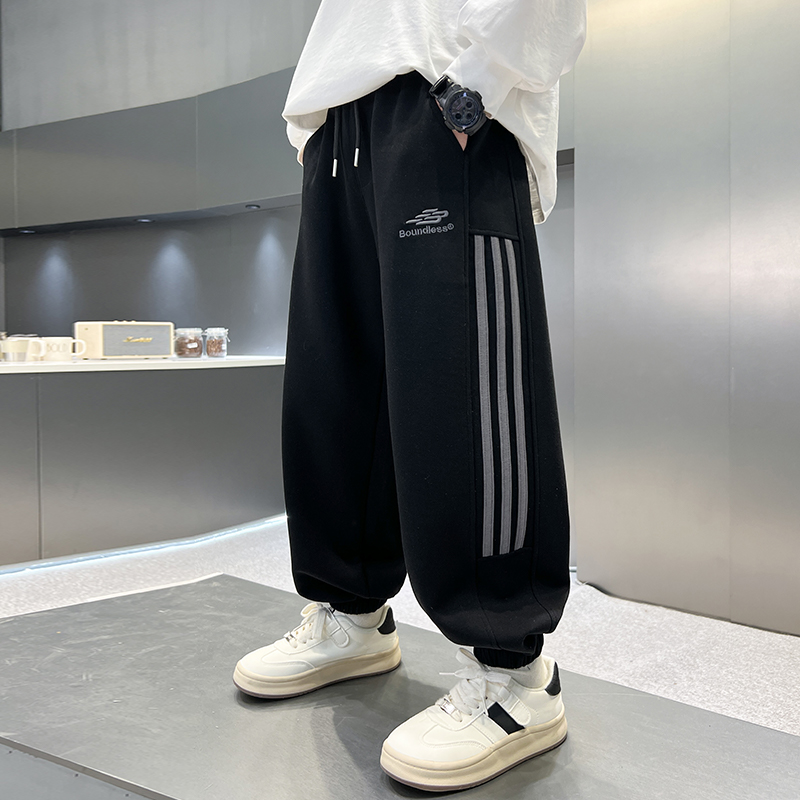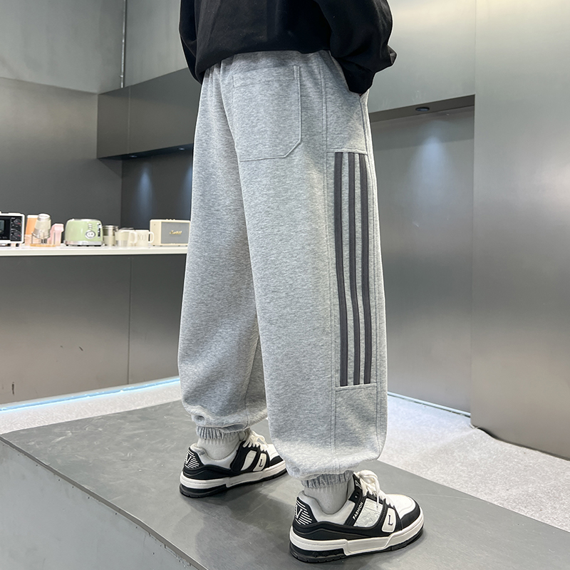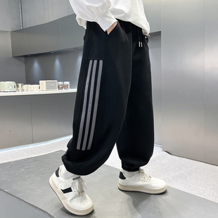 百搭宽松休闲哈伦裤 2025秋冬新款 子 女条纹拼接束脚运动裤 欧货卫裤