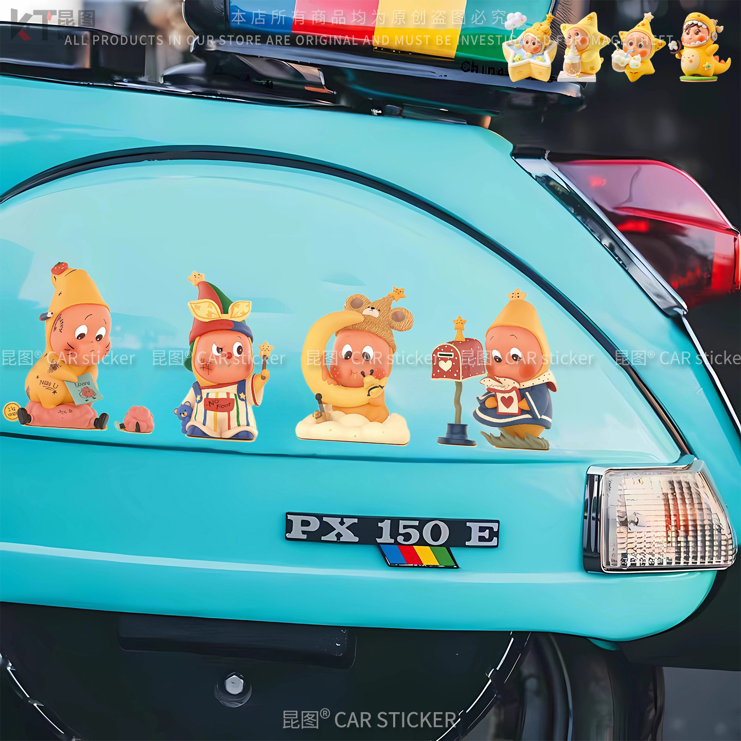 星星人汽车3D个性 饰车窗行李箱防水 划痕遮挡贴纸电动车摩托车身装