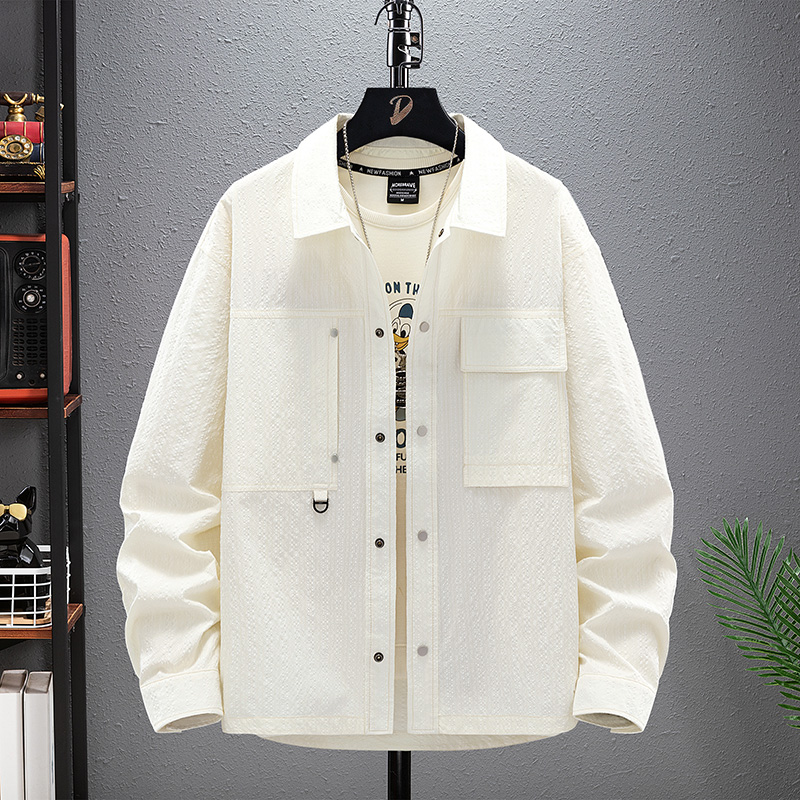 宽松翻领上衣507843 长衬衫 三福2025秋冬男士 英文印花机能工装