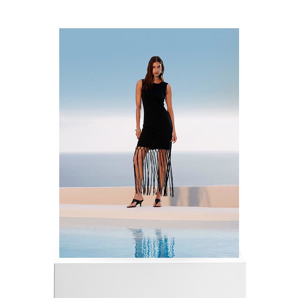 女士 ASOS 设计无袖 流苏花边下摆中长连衣裙 1h可退 黑色 潮奢