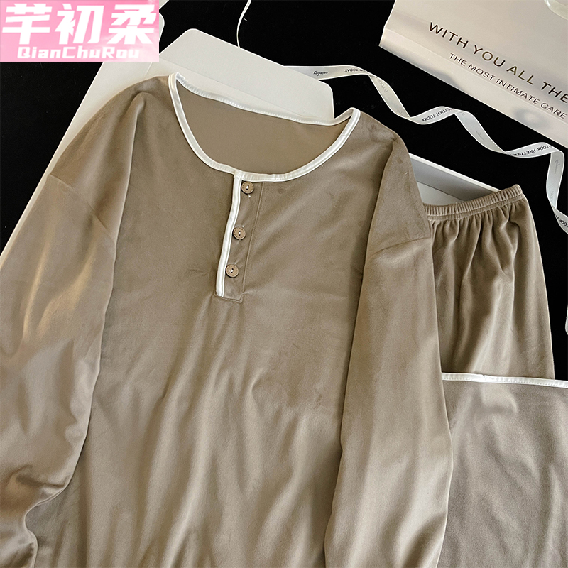 少女甜美海岛绒睡衣女春秋冬季 简约韩系加厚加绒保暖家居服套装