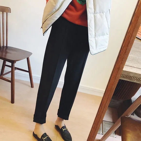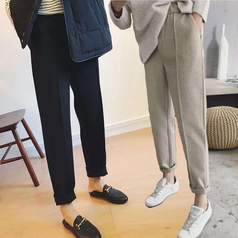 纯色毛呢休闲直筒西装 加厚宽松百搭哈伦裤 裤 2025新款 女秋冬季 韩版