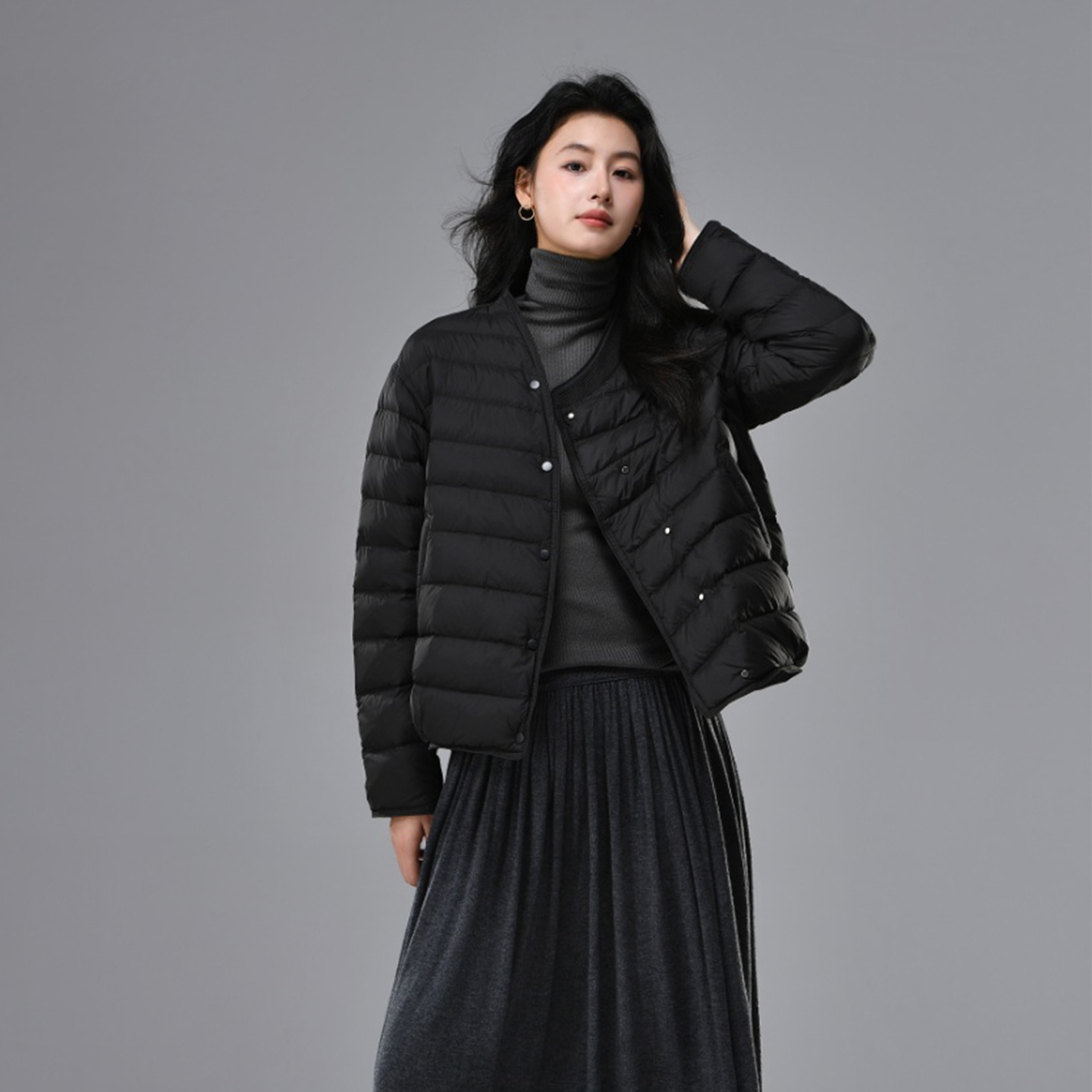 休闲圆领内胆保暖外套J 反季 佟丽娅明星同款 鸭鸭轻薄羽绒服女冬季