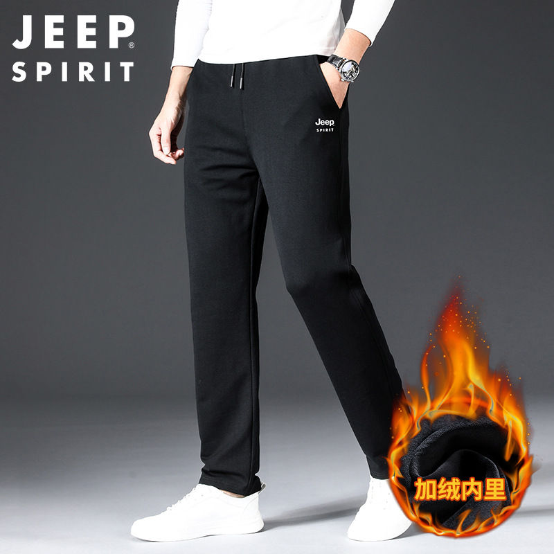 新款 冬季 加绒跑步裤 直筒裤 子 安踏防泼水运动长裤 黑色休闲长裤 男士