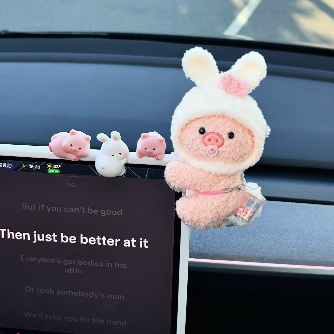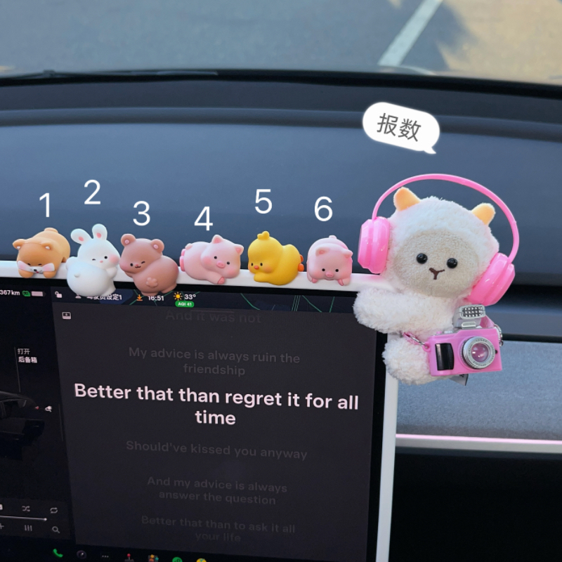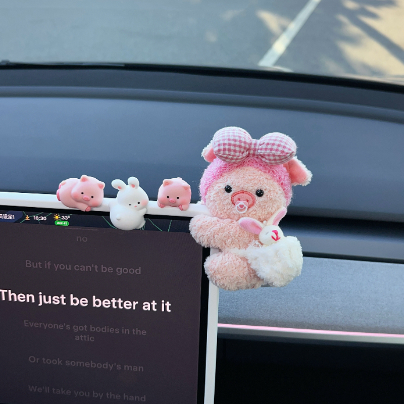 心形车贴汽车装 饰品摆件高级感中控台副驾驶车内氛围感可爱毛绒