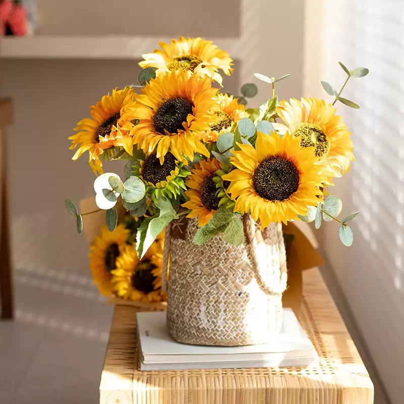 向日葵仿真花摆件客厅干花摆设餐桌花太阳花假花绢花装 饰拍摄道具