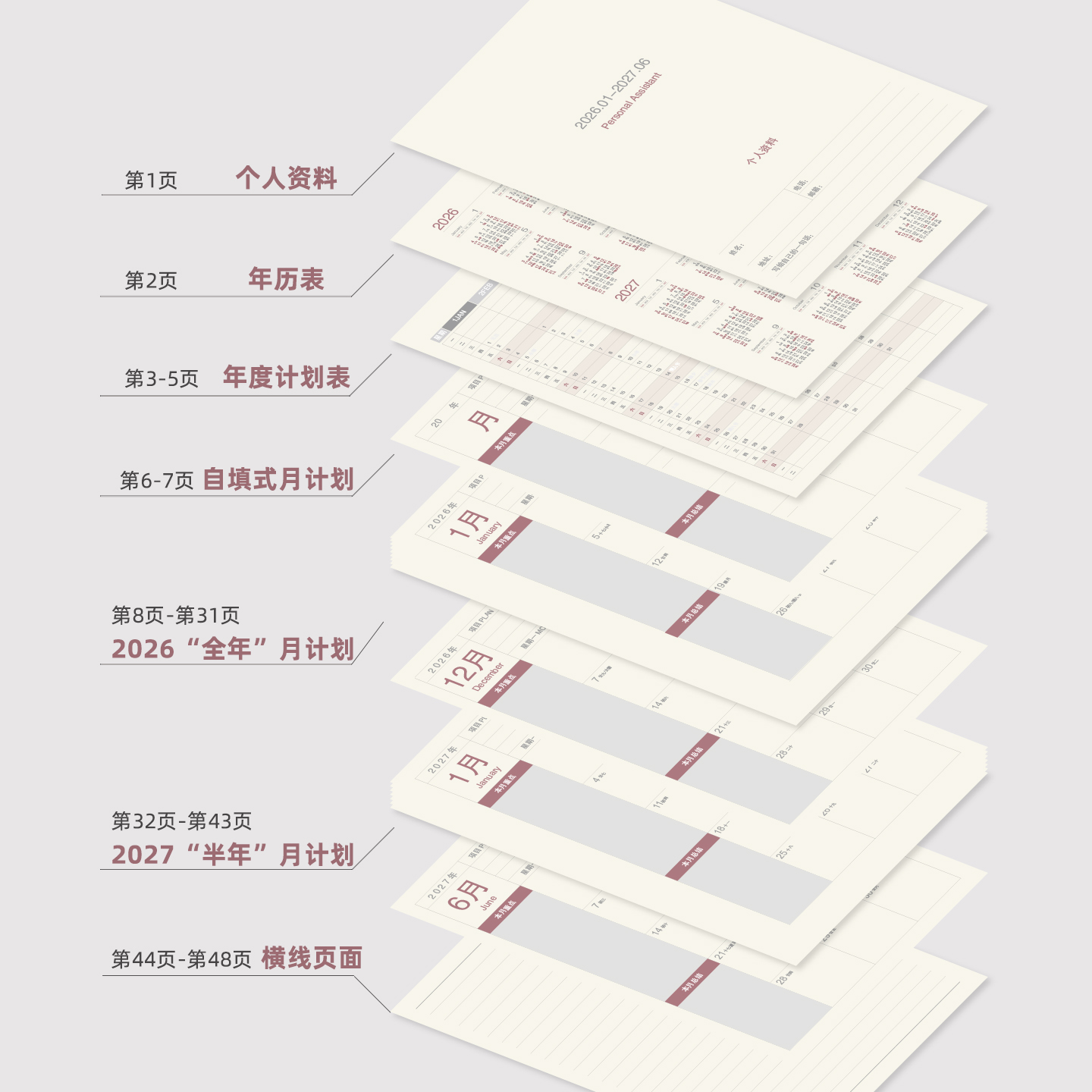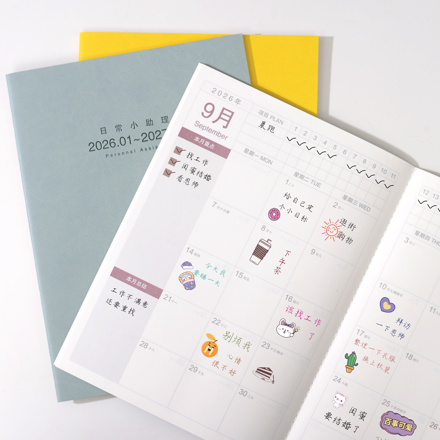 2026计划本皮面工作小秘书B5笔记本子日程本日历本记事本月计划打卡笔记本时间管理带日期效率手册企业定制