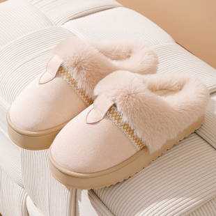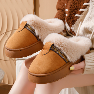 女 防寒秋冬时尚 2025新款 加绒加厚防滑软底保暖毛口室内居家女拖鞋