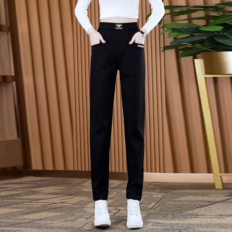 黑色通勤直筒裤 Navigare意大利小帆船厚款 新款 女25冬季 加绒牛仔裤