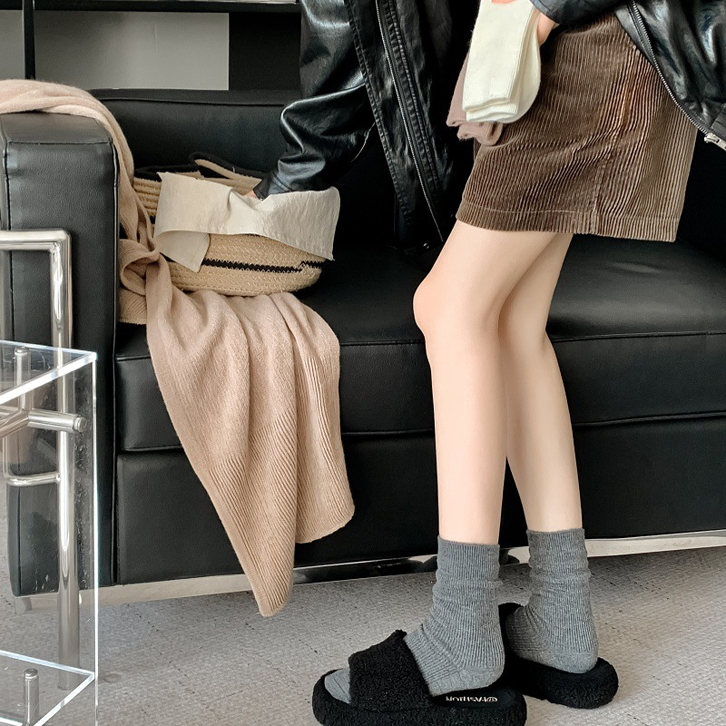 双针抗起球磨毛羊袜细条ins潮秋冬保暖加厚女中筒袜纯色女袜