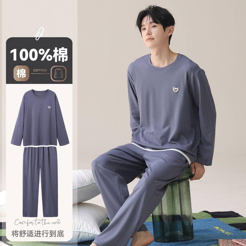 青少年睡衣男士 长袖 秋冬款 2025新款 纯棉家居服男款 帕兰朵春秋季