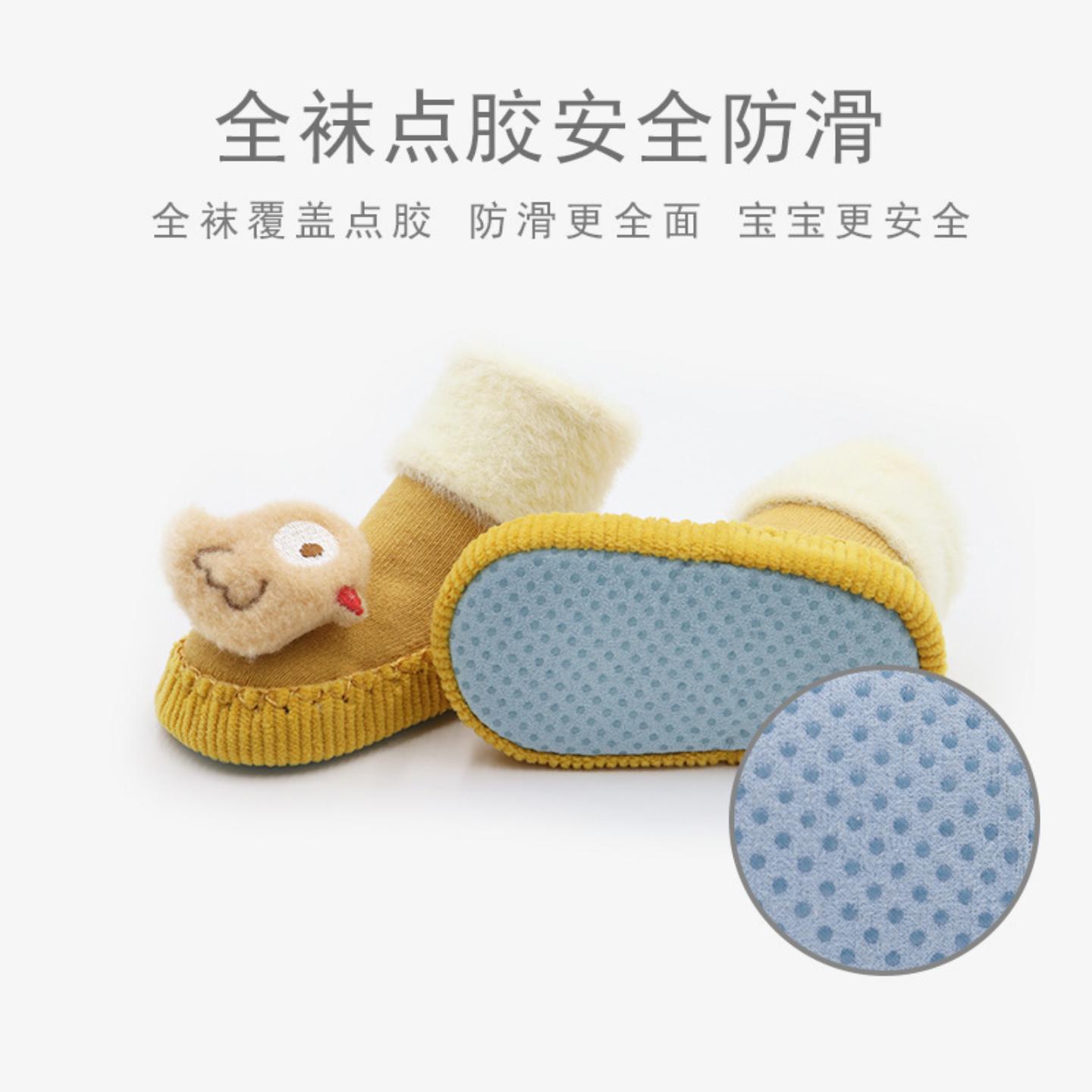 3岁 宝宝鞋 袜秋冬卡通加绒毛圈儿童中筒袜防滑保暖婴儿软底鞋