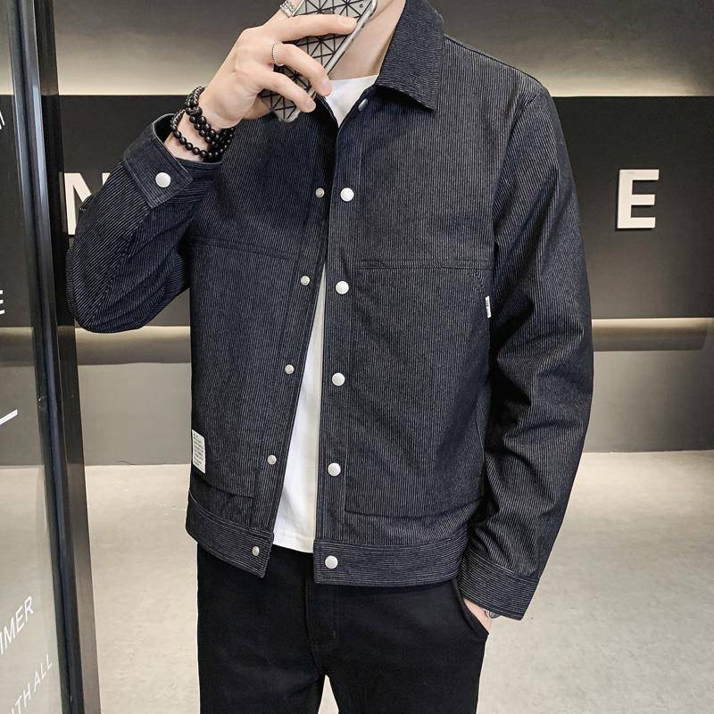 牛仔衣 工装 高级感防褪色原色水洗牛仔外套男宽松大码 翻领夹克新款