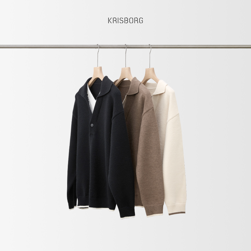 轻量宽松针织衫 老钱毛衣男含羊毛海鸥领POLO长袖 BM意式 BODYDREAM