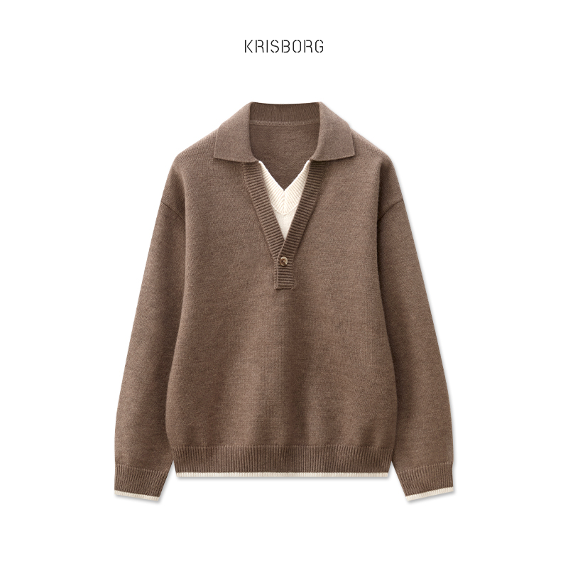 假两件拼接V字翻领毛衣18355703 女装 设计师款 佐丹奴撞色边针织衫