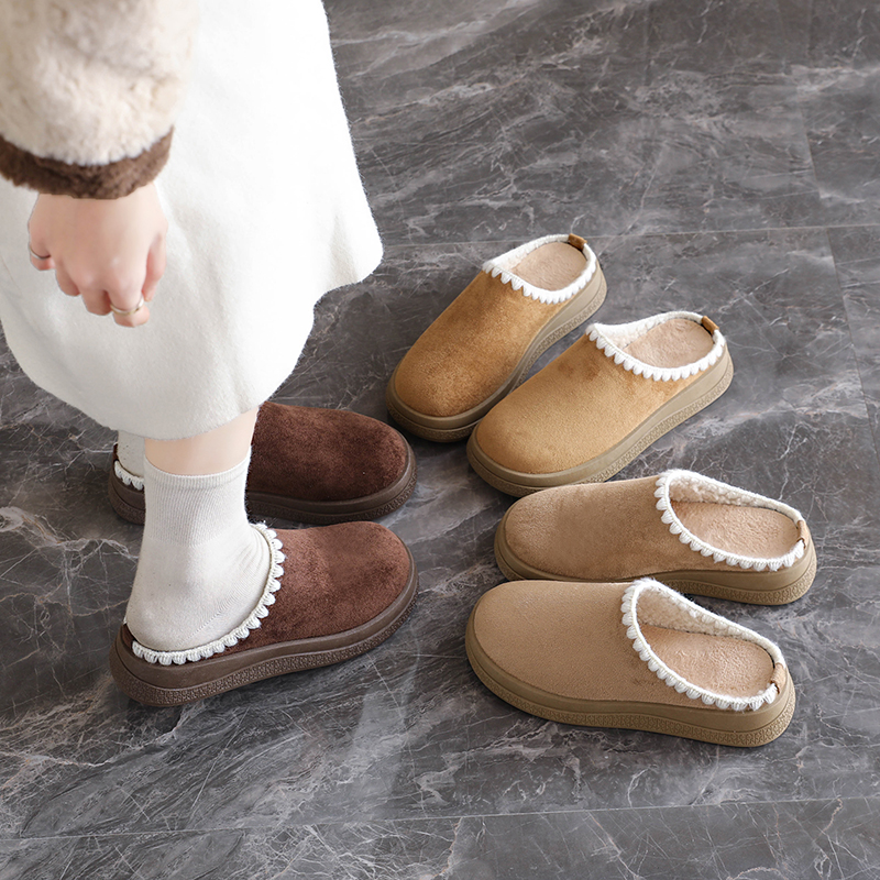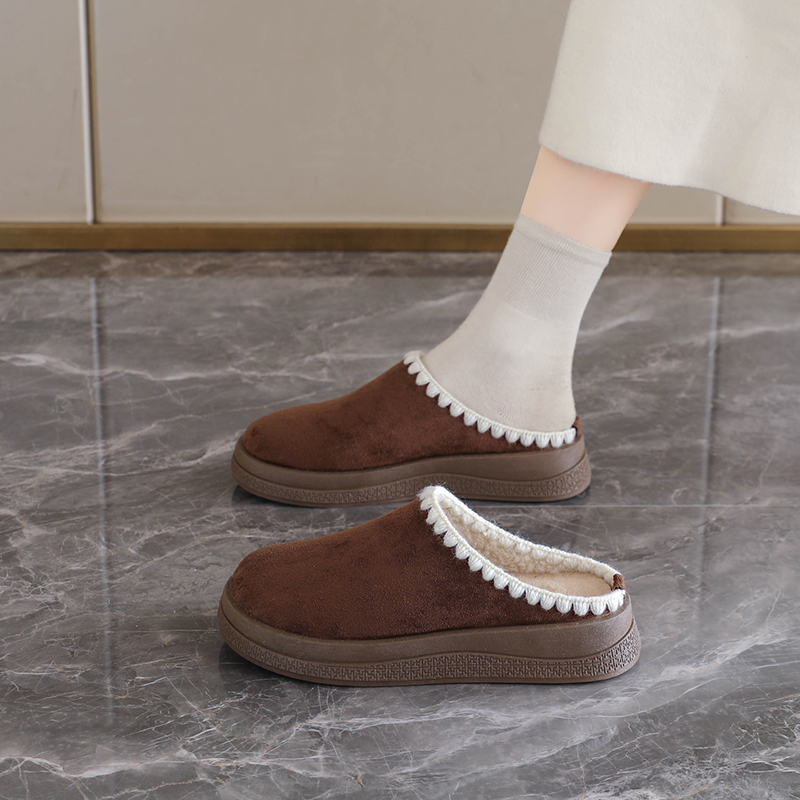 张凌赫同款 厚底增高可外穿预 百丽厚岛吐司2代包头冬加毛勃肯拖鞋