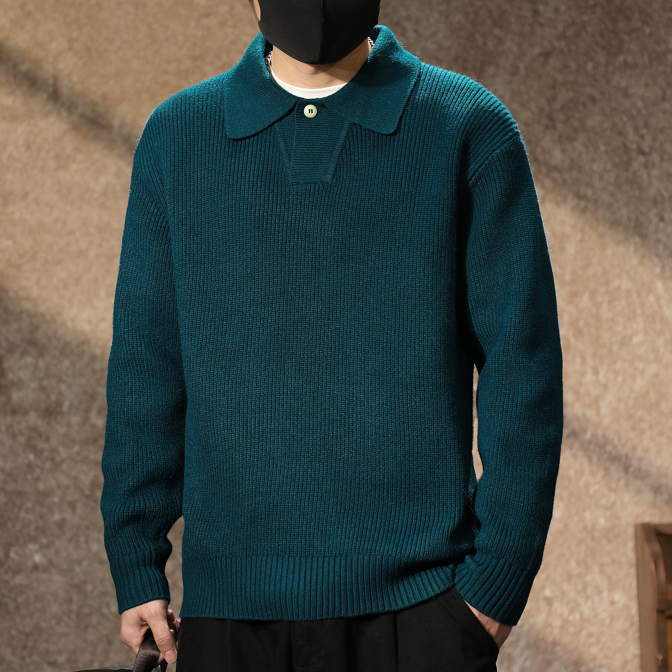 宽松慵懒套头坑条针织衫 复古海鸥领polo衫 毛衣男 美式 2025秋冬新款