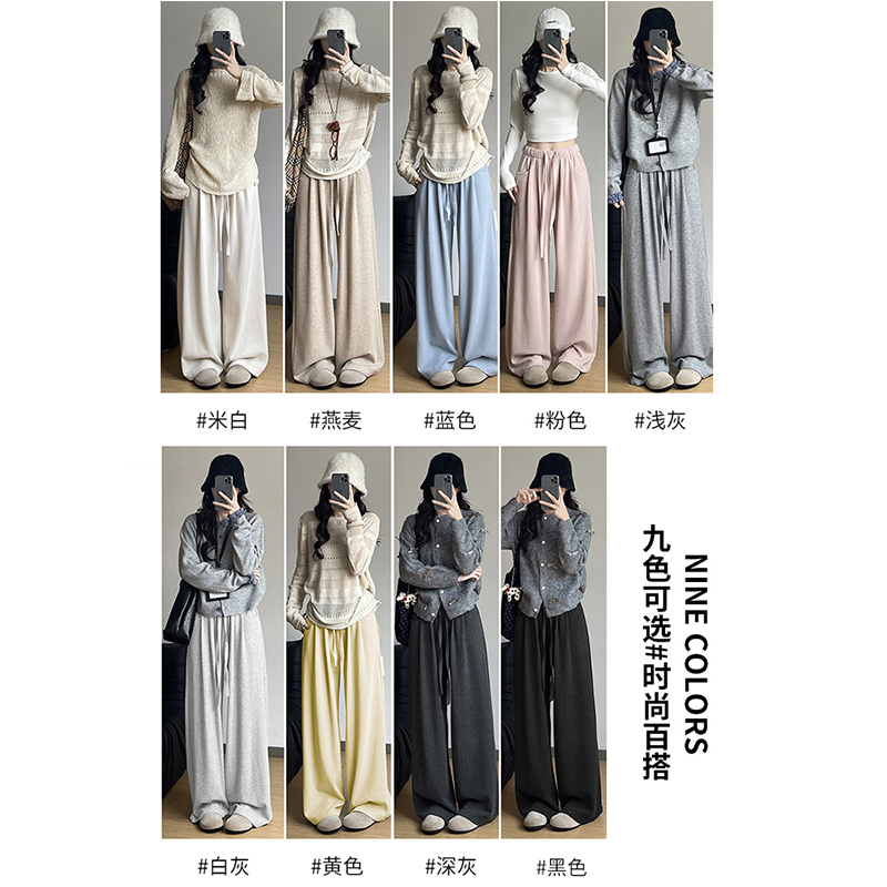 高级宽松bf慵懒垂感直筒加绒休闲阔腿裤 2025新款 子女春秋季 糯米裤
